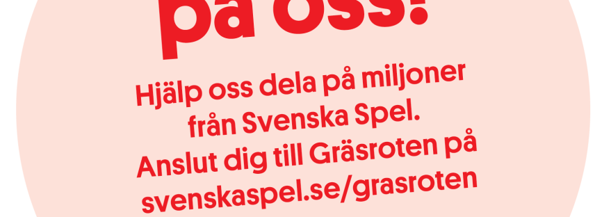 Stöd vår förening med Gräsroten Vår förening är en del av Svenska Spels initiativGräsroten som årligen delar ut miljoner till ungdomsidrotten. Välj oss nästa gång du spelar så är vi medoch delar på pengarna. Gör det på svenskaspel.se/grasroten eller hos ditt ombud Relaterade